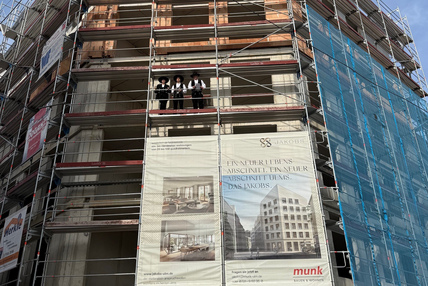 In wenigen Wochen werden jetzt die vorgefertigten Fassadenelemente montiert.