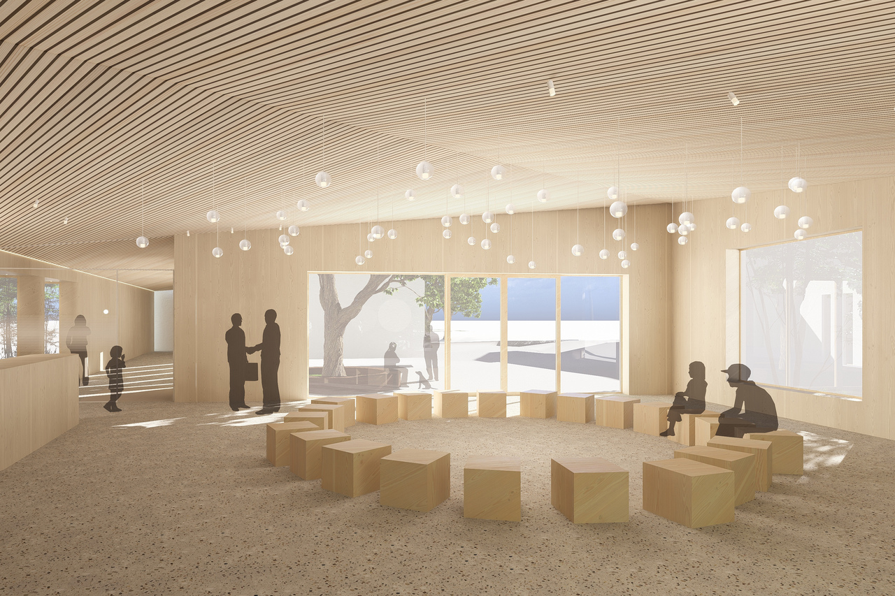 Zwei Gemeinden – ein Gemeindehaus. Welch´ eine Chance für die katholische und evangelische Gemeinde ein gemeinsamer beseelter Ort der Begegnung. Mit dem klassizistischen denkmalgeschützten Pfarrhaus und dem neuen skulpturalen Erweiterungskörper entsteht ein starkes Ensemble am Ortseingang der Gemeinde. Das Innere orientiert sich zum Gemeindeplatz mit Linde und Blick zur Pfarrkirche, während nach außen der der Landschaftsblick bis zum Säntis reicht. Die spannungsvolle Holzarchitektur nimmt den flexiblen Saal und verbindet sich subtil mit dem Bestandsgebäude aus stuckverzierten Bestandsräumen für die verschiedenen Gruppenarbeiten. Neues und Altes begegnet sich auf Augenhöhe, haptisch, riechend, sinnlich und in die Zukunft weisend.
