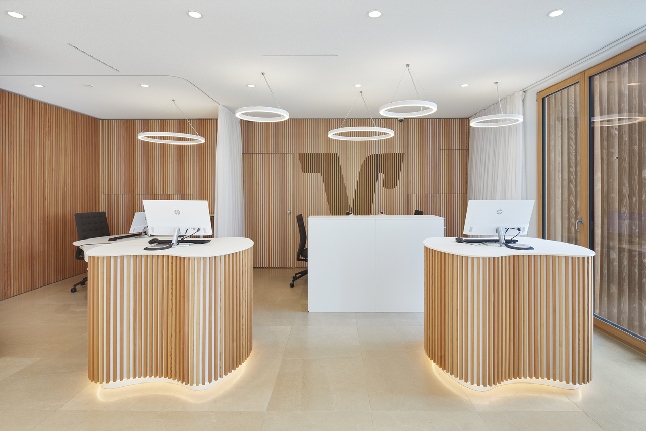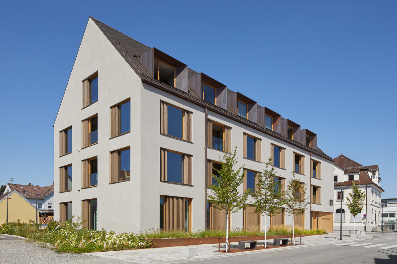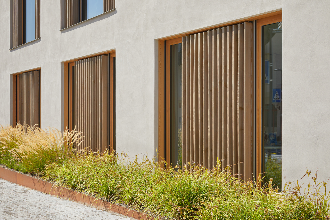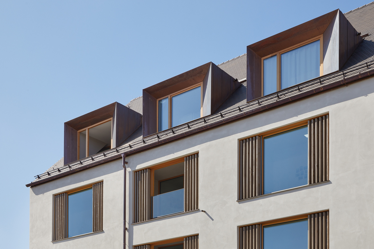 Durch die monolithische Ziegelbauweise mit geschliffenem Scheibenputz, Lärchenholz-Fenstern und mit kupferverkleideten Gauben konnte ein wertiges und nachhaltiges Gebäude für Bewohner und Nutzer geschaffen werden.