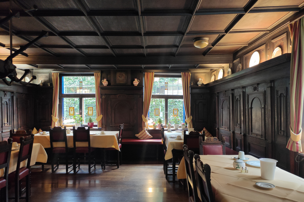 Ein besonderes Augenmerk liegt hierbei auf dem Erhalt und der wieder Instandsetzung von historischen Bauteilen, darunter beispielsweise das Wandtäfer aus dem späten 19. Jahrhundert in einem der Gasträume.